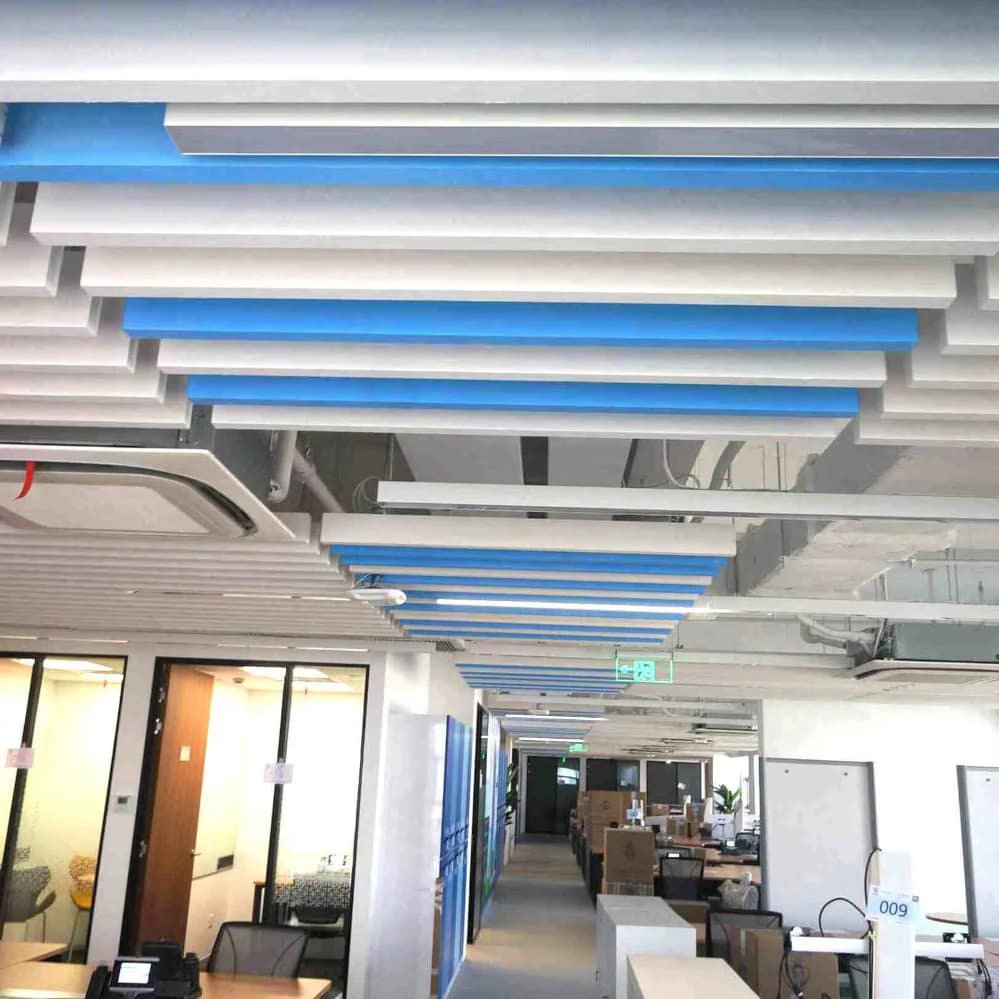 يُساعد تحسين جودة الصوت الموظفين على التركيز والتواصل بوضوح والعمل بكفاءة أكبر. السقف الرديء ← مكتب صاخب ← موظفون مُرهقون. السقف الجيد ← مكتب هادئ ← عمل أفضل.